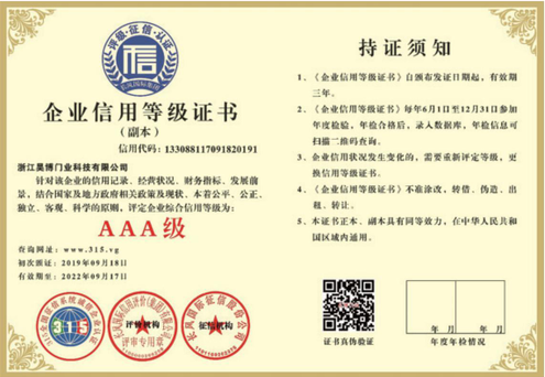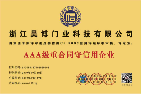 公司一直以來嚴格執(zhí)行ISO9001質量體系和ISO14001環(huán)境管理體系標準,建立了完備的科研、開發(fā)、生產、銷售服務體系。公司是浙江省門業(yè)協(xié)會會員單位,江山門業(yè)協(xié)會理事單位,中國木材與木制品流通協(xié)會會員單位,江山市消防協(xié)會副會長單位。