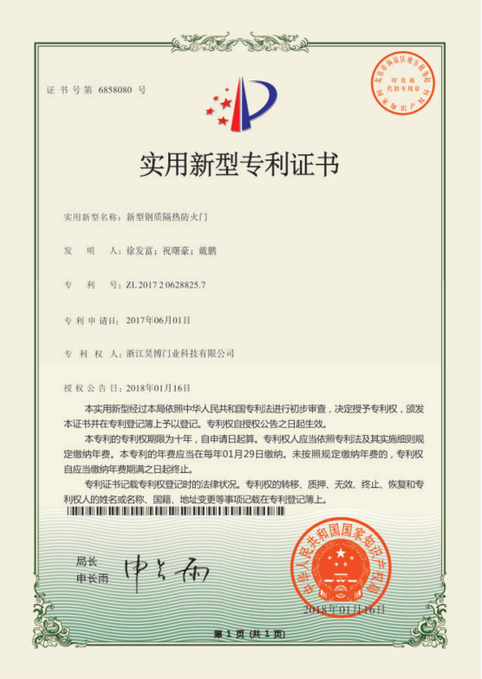 浙江昊博門業(yè)科技有限公司創(chuàng)建于2009年,公司位于享有“中國木門之都”、“消防器材之鄉(xiāng)”的浙江——江山。公司專業(yè)從事鋼質、木質、鋼木質防火門,裝甲進戶門,避難間防火門、耐火窗及防火卷簾門系列產品的研發(fā)、制造、銷售和安裝服務。旗下有全資子公司浙江昊博消防科技有限公司,專業(yè)從事木質防火門、避難間防火門的研發(fā)、生產。